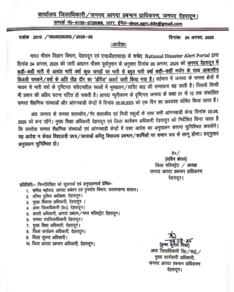 बच्चों की सुरक्षा के मद्देनज़र प्रशासन सतर्क, आदेश की अवहेलना पर सख्त कार्रवाई की चेतावनी... उत्तराखंड में लगातार हो रही...