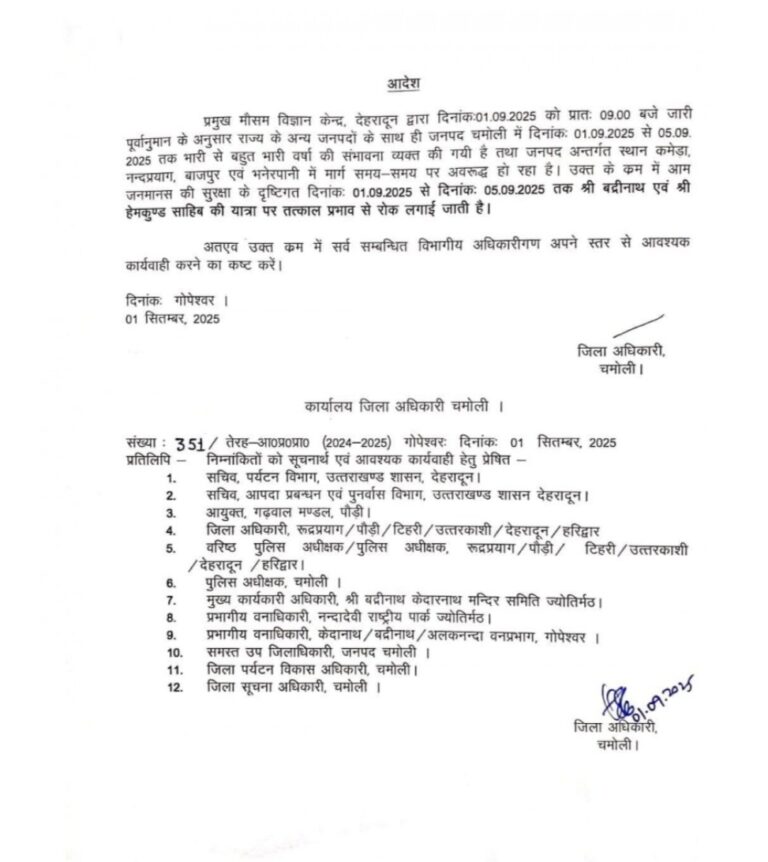 उत्तराखंड में लगातार जारी बारिश को देखते हुए, सरकार ने चारधाम और हेमकुंड साहिब यात्रा पांच सितंबर तक के लिए...